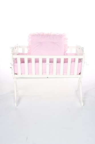 The all time favorite gingham fabrics are classic. Create the look you love, by choosing the Pink Gingham Cradle Bedding Set. The traditional look of gingham and the comfy feel of this soft practical fabric, trimmed with a gingham ruffle, make it the perfect choice for any cradle. Set includes a comforter, bumper and fitted sheet to fit cradle size 18x36. Fully manufactured in the USA.